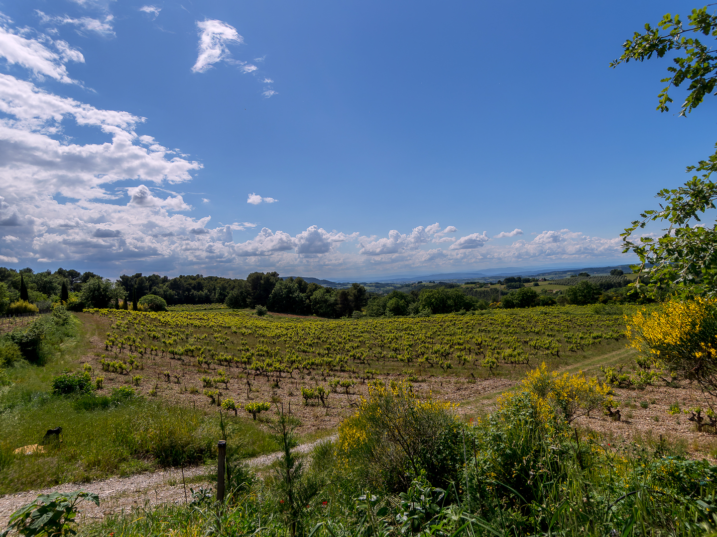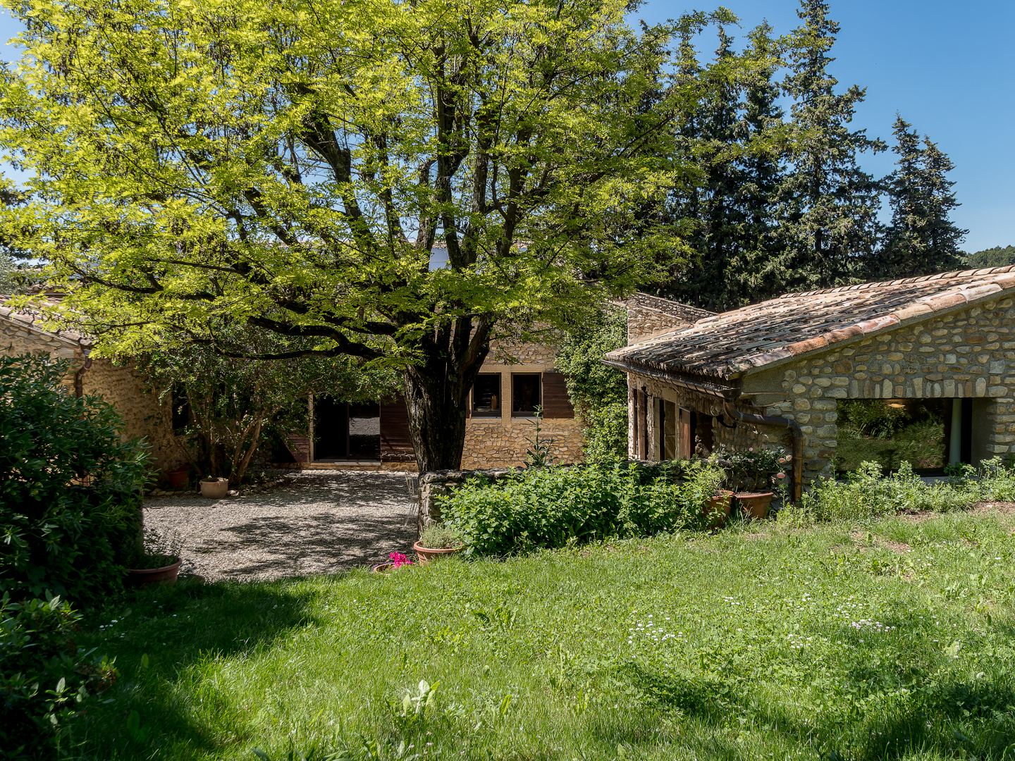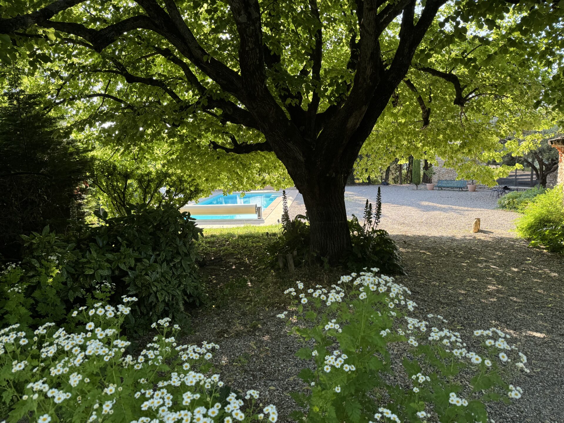 Le domaine est arboré, non clôturé et notre bois de pins d’Alep protège de l’antenne de téléphonie mobile de Vaison située sur le versant opposé au mas.